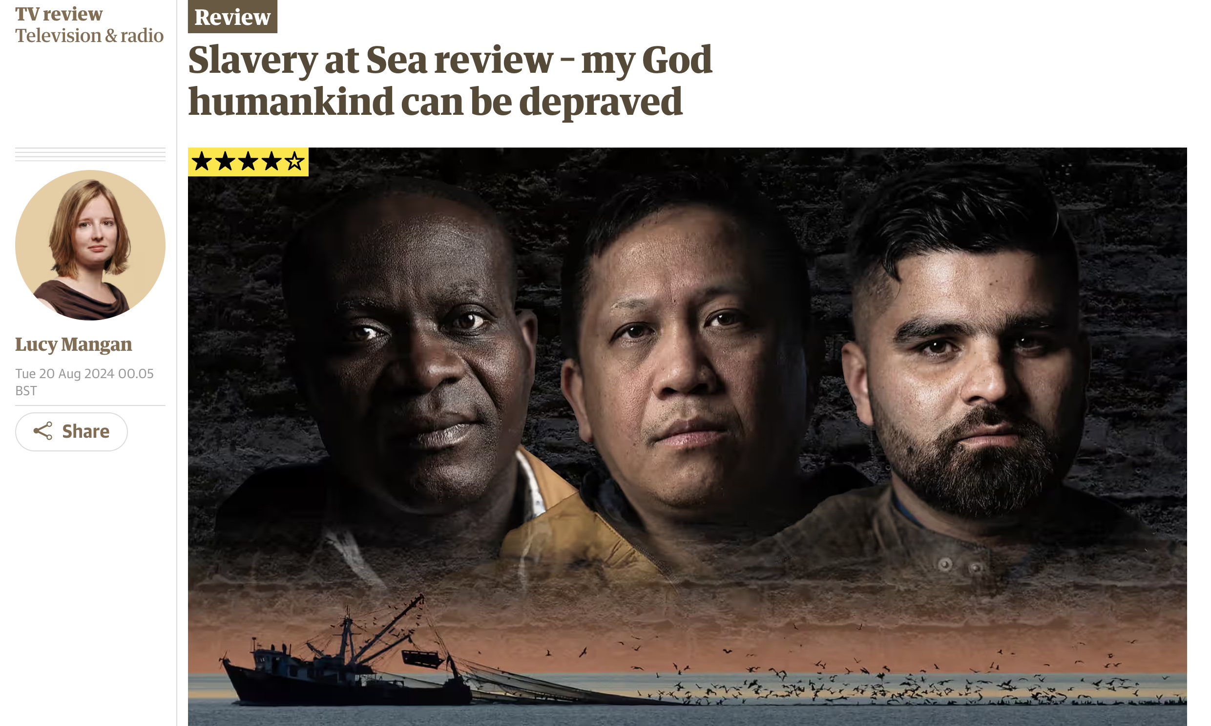 A three-year investigation uncovers allegations of modern slavery aboard UK fishing vessels. We hears the stories of migrant workers who came to these shores in search of a better life, only to find hardship and misery. We further explore a world-wide web of exploitation which puts profit before people.
